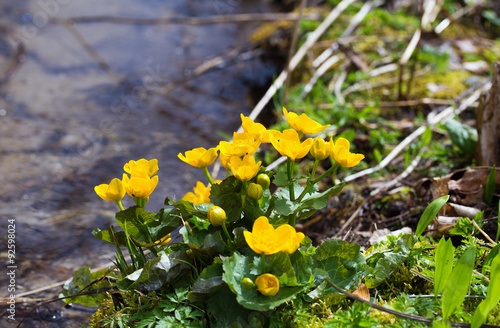Yellow buttercup flowers (Ranunculus) in stream