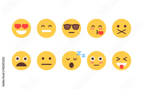 Yellow Cartoon Face Set Emoji People Different Emotion Icon Collection Flat Vector Illustration