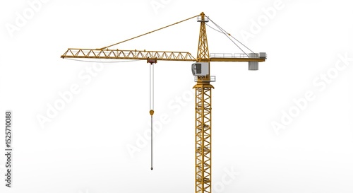 Yellow construction crane stands tall against bright white background. AI Generated