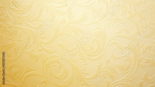 yellow delicate background with vintage floral wallpaper ornament on the wall copy space blank, warm glowing shades