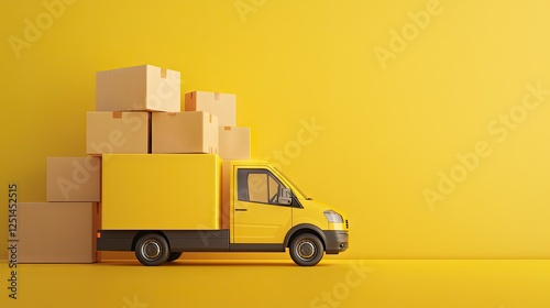 Yellow delivery van loaded with boxes on yellow background. Possible use Stock photo for e-commerce or logistics