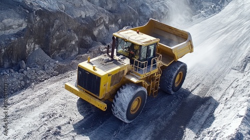 Yellow Dump Truck Moving Dirt in a Quarry