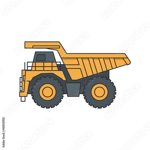 Yellow dump truck side view illustration on a white background.
