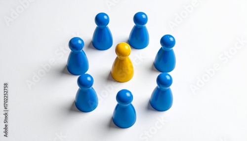 Yellow figurine surrounded by blue pieces in circular arrangement.