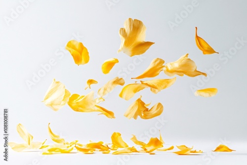 Yellow Flower Petals Falling on a White Background: A Delicate and Romantic Image