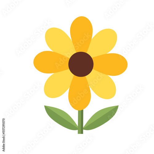 Yellow flower with dark brown center and oval petals. Flat floral design, bright and friendly, ideal for seasonal and spring themes