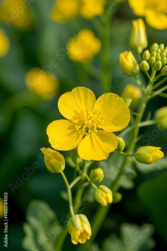 yellow flowers are blooming in a field of green leaves