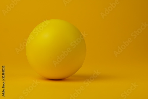 Yellow glossy game ball close-up on a yellow background.Yellow ball.