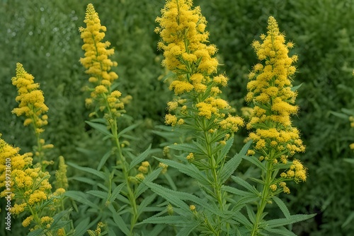 Yellow goldenrod flowers with plume like clusters and green stems, AI Generated