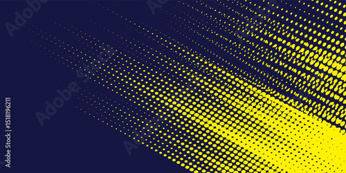 Yellow halftone on blue background. Vector dotted sparkles or halftone shine pattern texture Pop Art Style Background.