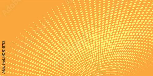 Yellow halftone pattern. Retro comic gradient background. Bright orange pixelated dotted texture overlay.
