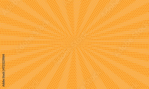 Yellow halftone pattern. Retro comic gradient background. Bright orange pixelated dotted texture overlay. Cartoon pop art faded gradient pattern. Vector backdrop for poster, banner, advertisement