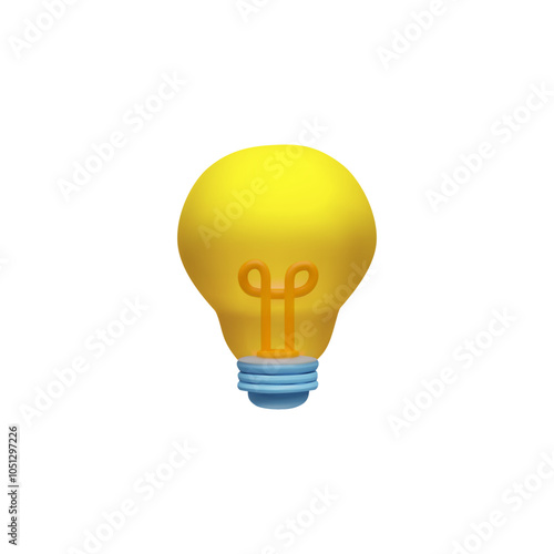 Yellow incandescent light bulb 3D cartoon plastic style vector icon, render electric energy lighting, bright idea symbol