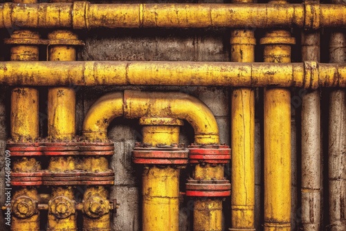 Yellow industrial pipes against a gray wall