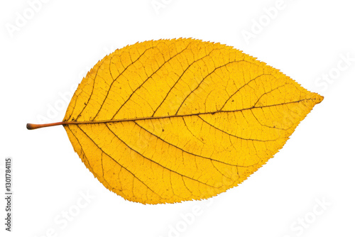 Yellow leaf lying flat on a white surface, cut out