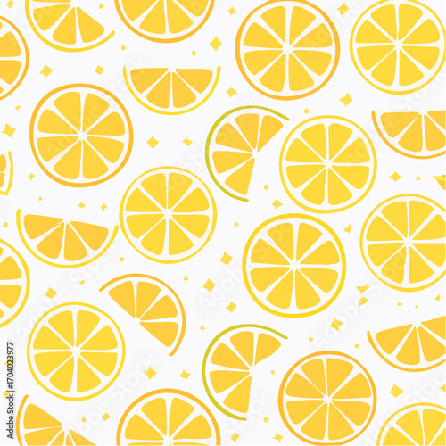 Yellow Lemon Slices and White Sparkles Pattern on White Background