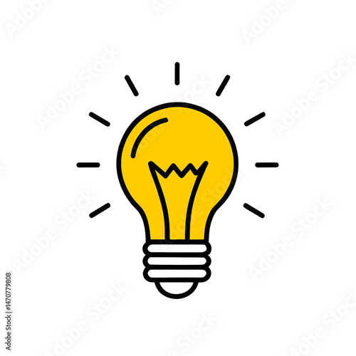 yellow light bulb icon, blue outline, isolated white background, new idea, breakthrough, innovation, inspiration