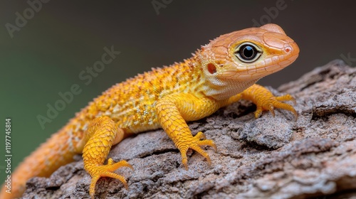 Yellow lizard on wood, close-up, blurred background, nature photography, wildlife
