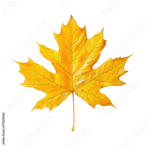 Yellow maple leaf isolated on transparent background symbolizing autumn season change nature