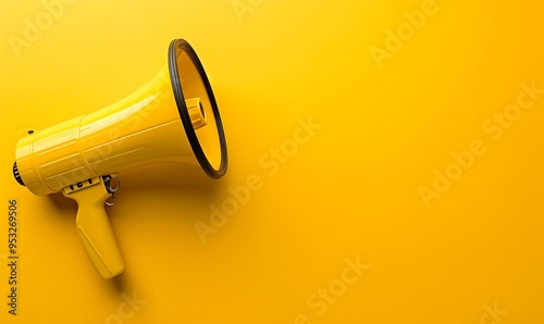 Yellow megaphone on yellow background with copy space, banner design. The concept of the marketing