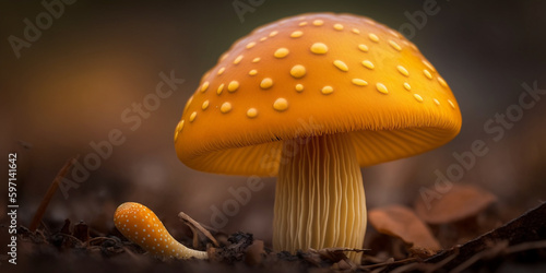 Yellow mushrooms macro picture with beautiful colors created using Generative AI tools