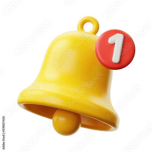 Yellow notification bell icon with a red number alert symbol on a transparent background image