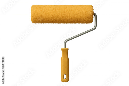 Yellow paint roller dripping vibrant color, prepared for interior wall painting and home improvement tasks