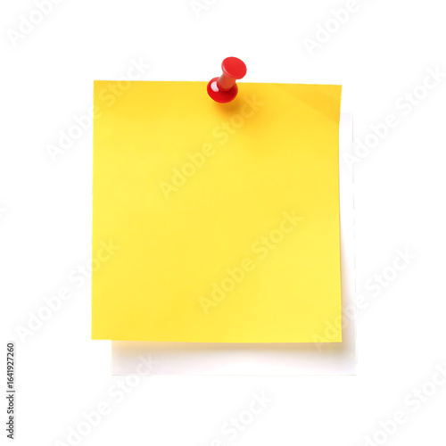 Yellow paper note red pushpin isolated on a transparent background sticky post