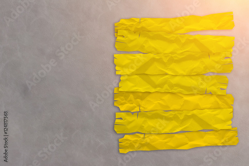 yellow paper tag on grey leather background