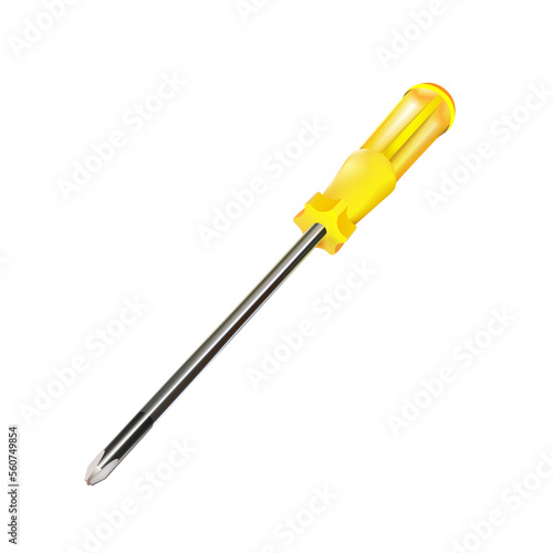 Yellow professional realistic screwdriver with a plastic handle. isometric 3d construction tool isolated on white background. Cruciform for repair and construction. png