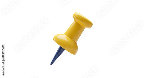 Yellow pushpin isolated on black background. 3D rendering. 3D icon, plastic illustration style on transparent or white background