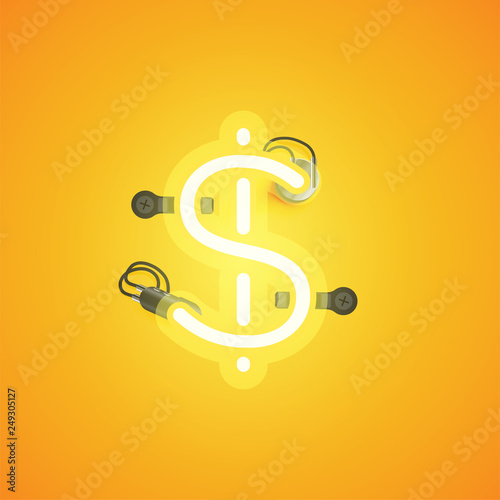 Yellow realistic neon character with wires and console from a fontset, vector illustration