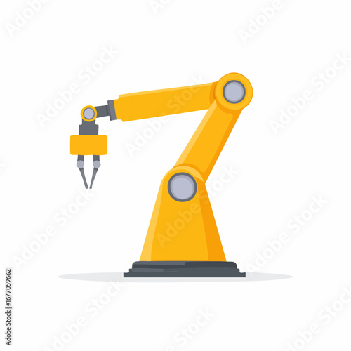 Yellow robotic arm with gripper for industrial automation and manufacturing