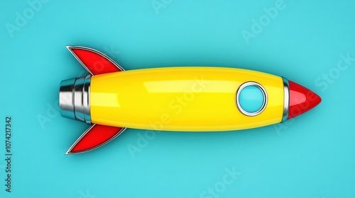 Yellow Rocket Ship Illustration 3D Render Blue Background Space Travel Startup Concep