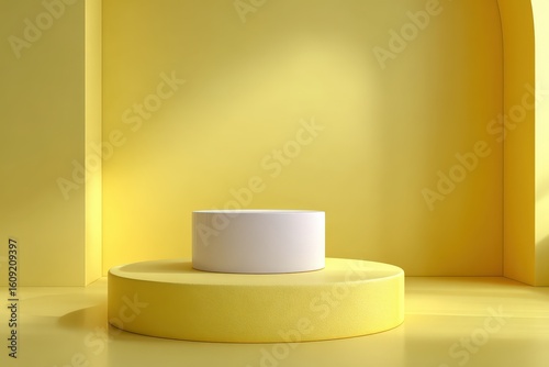 Yellow room featuring a cylindrical yellow platform topped with a white cylinder