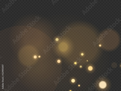 Yellow sparks glitter special light effect. Vector sparkles on transparent background. Christmas abstract pattern. Sparkling magic dust particles -