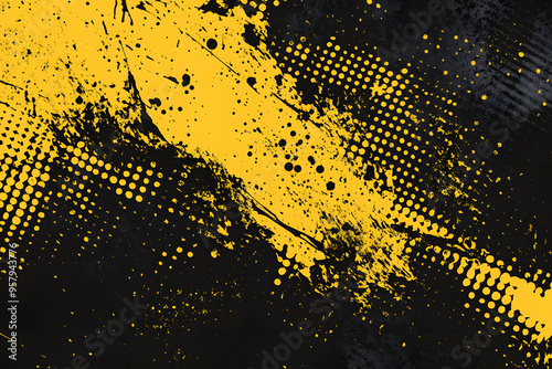yellow spots, splashes and dotted paint marks on a black background. grunge texture of old background