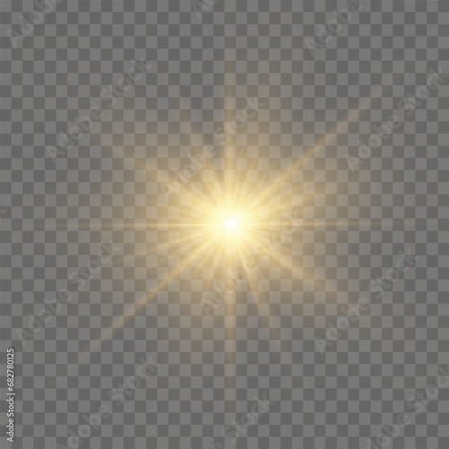 Yellow star. Vector transparent sunlight special lens flash light effect