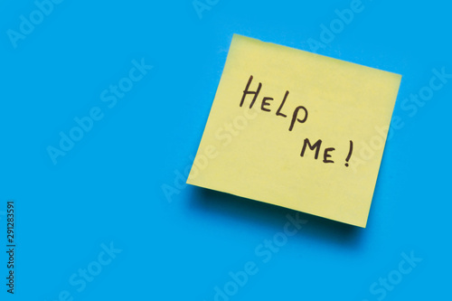 yellow sticker on a blue background. copy space