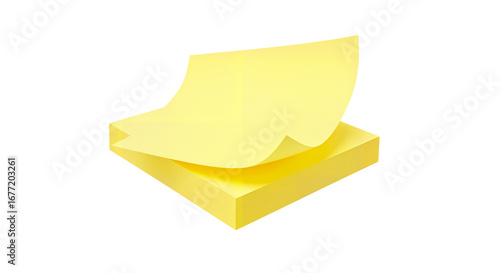 Yellow sticky notes in stack with one sheet lifted up isolated