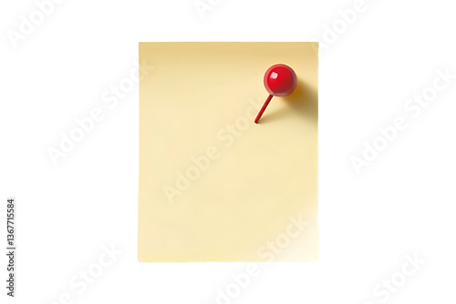 yellow sticky post it note with red pushpin Isolated on White and Transparent Background PNG Image.