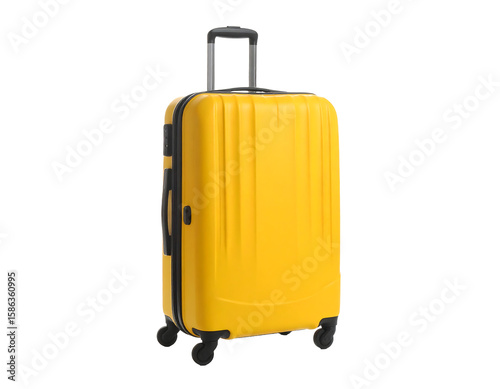 Yellow Suitcase: Rolling Luggage, Travel Bag, Vacation Packing PNG, Transparent Background.
