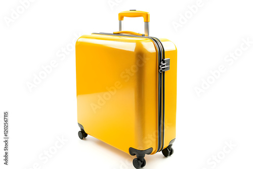 Yellow suitcase with wheels and handle isolated on a white background