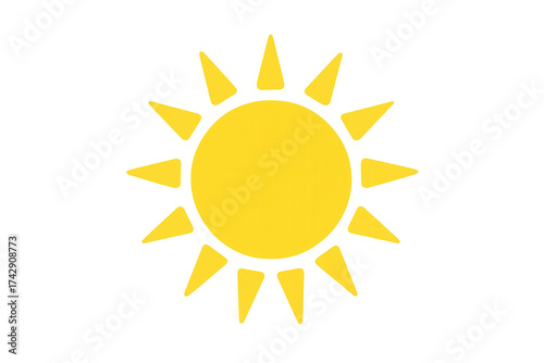 Yellow sun icon shining, symbolizing summer heat, hot weather, and bright light on transparent background