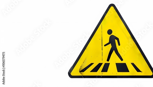 Yellow Triangle with a Black Pedestrian Symbol on White Background