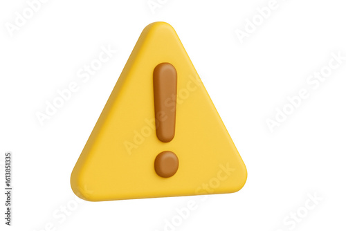 Yellow triangular warning sign displaying brown exclamation mark, signaling caution and potential hazards, communicating critical safety information on transparent background