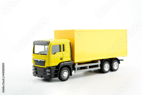 Yellow truck on white background, transportation car Delivery