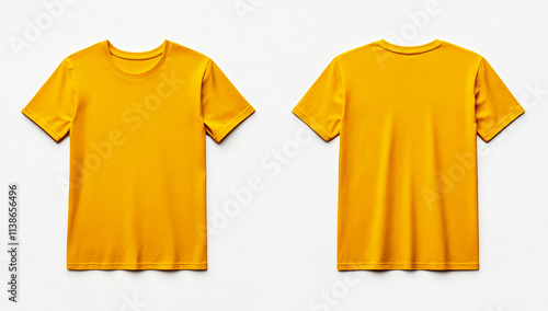 Yellow T-Shirt Template on a White Background, Front and Back View