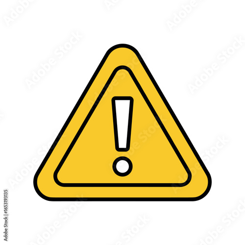 Yellow warning sign with exclamation point on white background for safety alert. Vector illustration