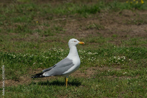 Yellow-legged Gull (Larus michahellis) perched on grass